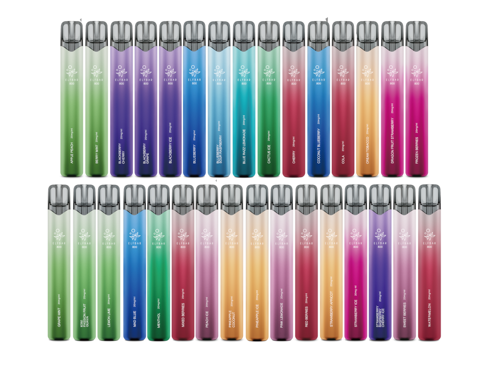 Die Elfbar 800 ist in insgesamt 20 verschiedenen Geschmacksrichtungen erhältlich, darunter zahlreiche fruchtige Sorten mit einer frischen Note. Das ergonomische Design und die kompakte Form machen sie zu einer praktischen Wahl für unterwegs.