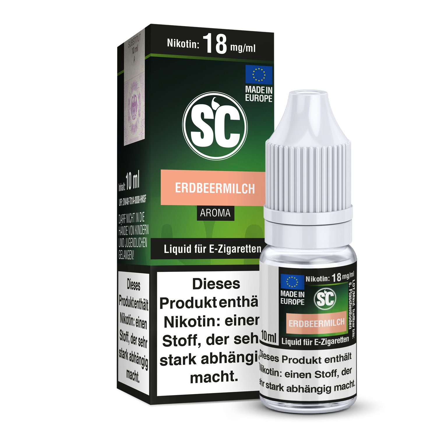 - 1× 10 ml Flasche SC Erdbeermilch E-Liquid