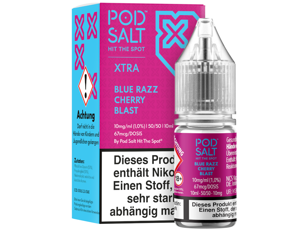 - 1× 10 ml Flasche Pod Salt X Blue Razz Cherry Blast