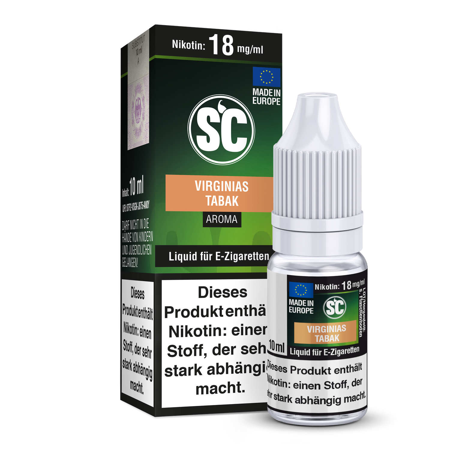 - 1× 10 ml Flasche SC Virginias Tabak E-Liquid in gewählter Stärke